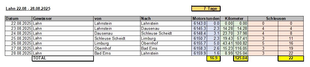 53.9 Motorstunden / 261.78 km / 81 Schleusen