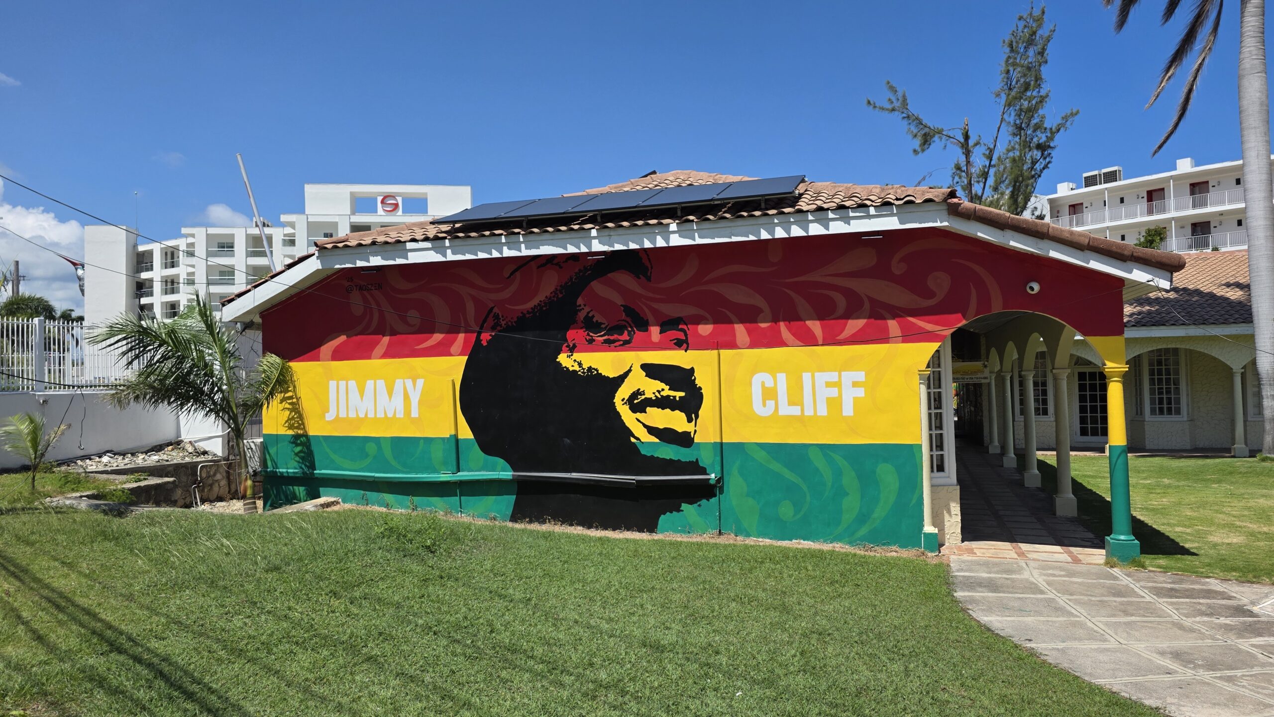 Die Hauptstrasse entlang des Meeres entpuppt sich allerdings als endlose Parade von Souvenirläden. Davor Personal, das so aufdringlich ist, dass man meint, es wolle einen gleich adoptieren; hinterherlaufen und lautstarkes Einreden inklusive. Abgesehen davon zeigt sich die Stadt herrlich bunt, und an fast jeder Hauswand lächeln die inselheiligen Reggae-Ikonen herab.